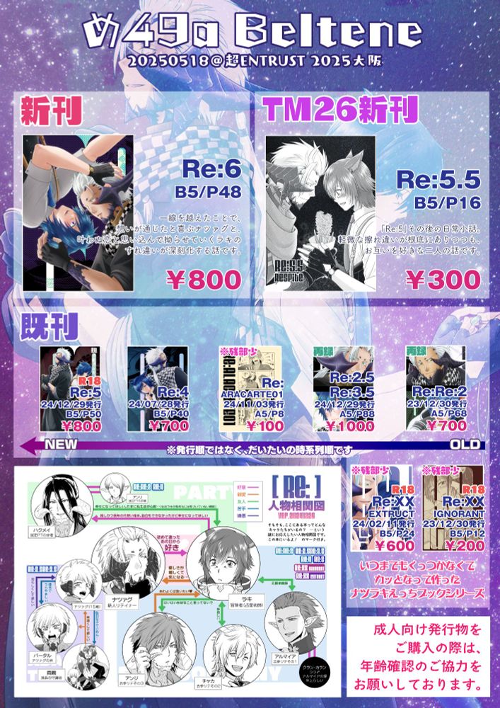 折り綴じですが新刊もあります! 『Re:6』は関東初売りです! それから今回落とした『Re:7』のプレビュー無配もございますので、ぜひ遊びに来てください!