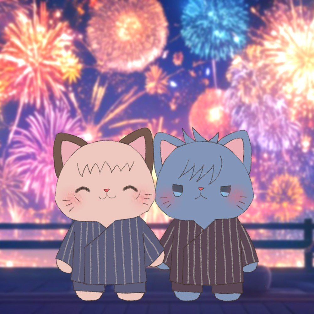 ゆじめぐにゃんは花火一発目の音に驚いて虎伏に飛びつきそう〜……かわいいねぇ🐱🐾