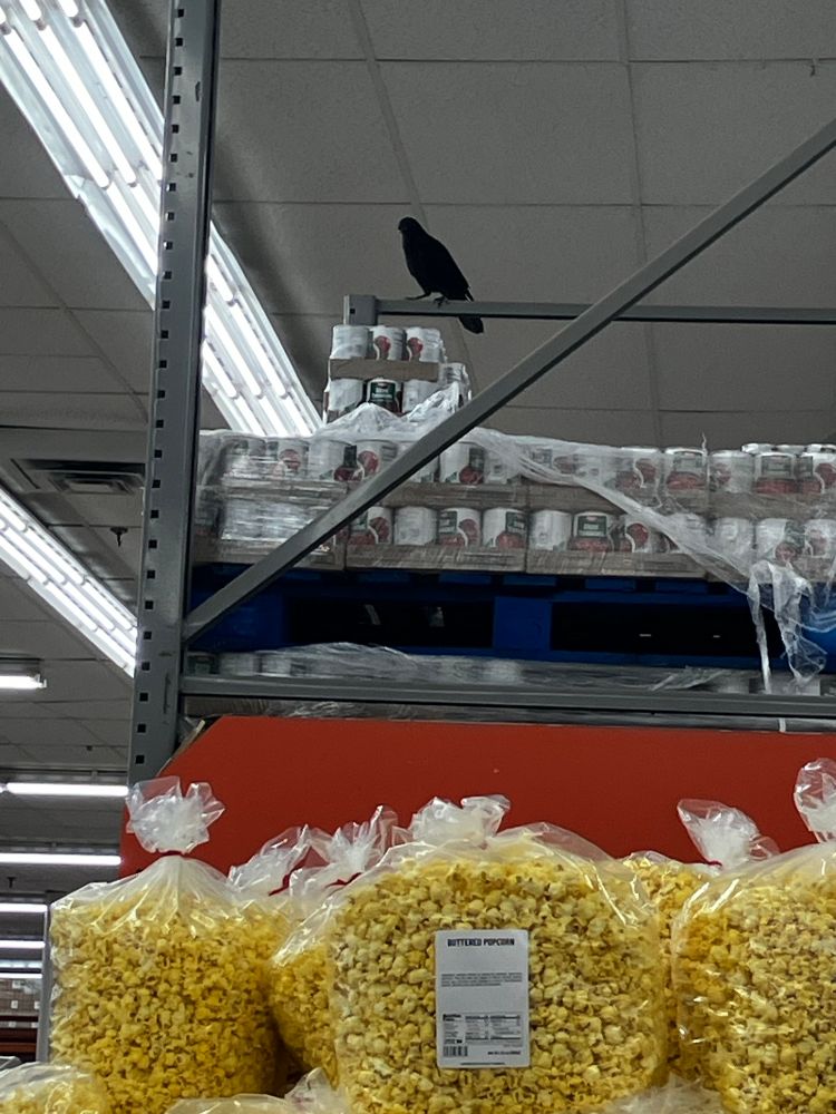 We had loads of fun waiting in line as store employees tried to figure out to get the bird out of the store