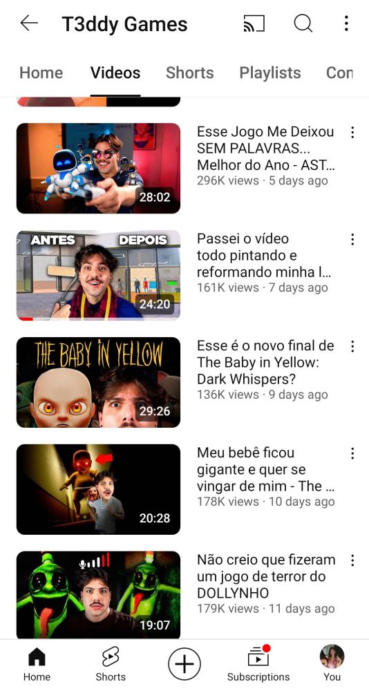 t3ddy postando video longo no canal de games 🙏🙏 GIRL DINNER