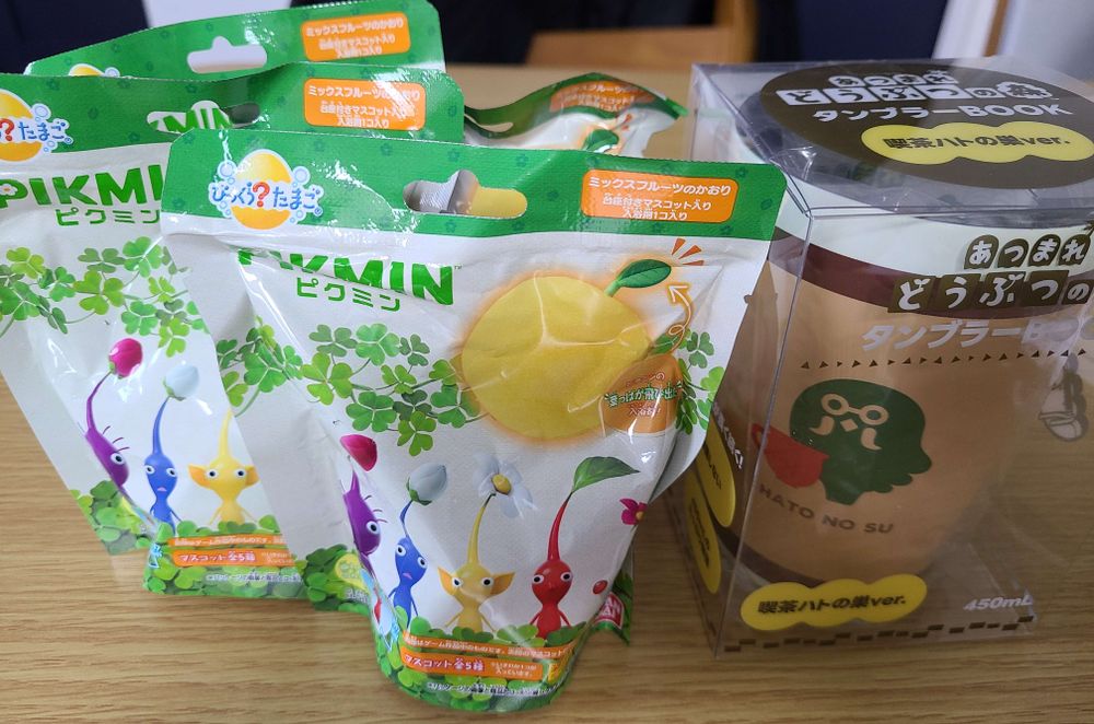 ピクミンのびっくらたまごと、欲しいなーって思ってたハトの巣タンブラー。