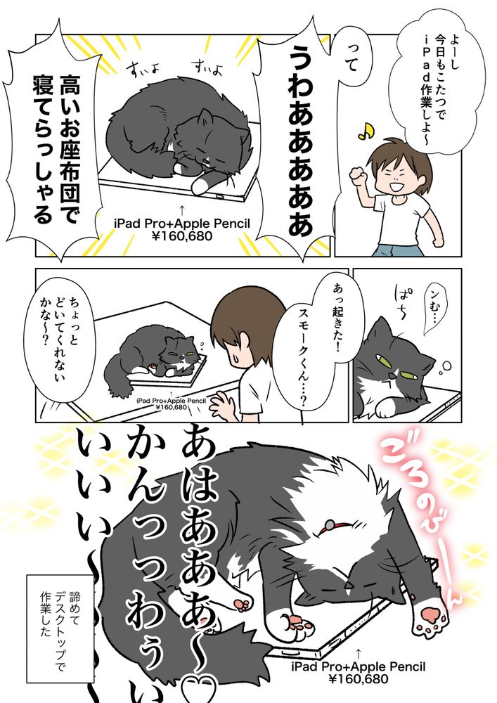 iPadの上で寝るの気に入ってるんだ…🥹