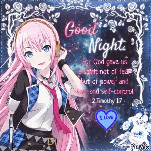 a picture of a girl with pink hair and a quote from 2 timothy 1:17