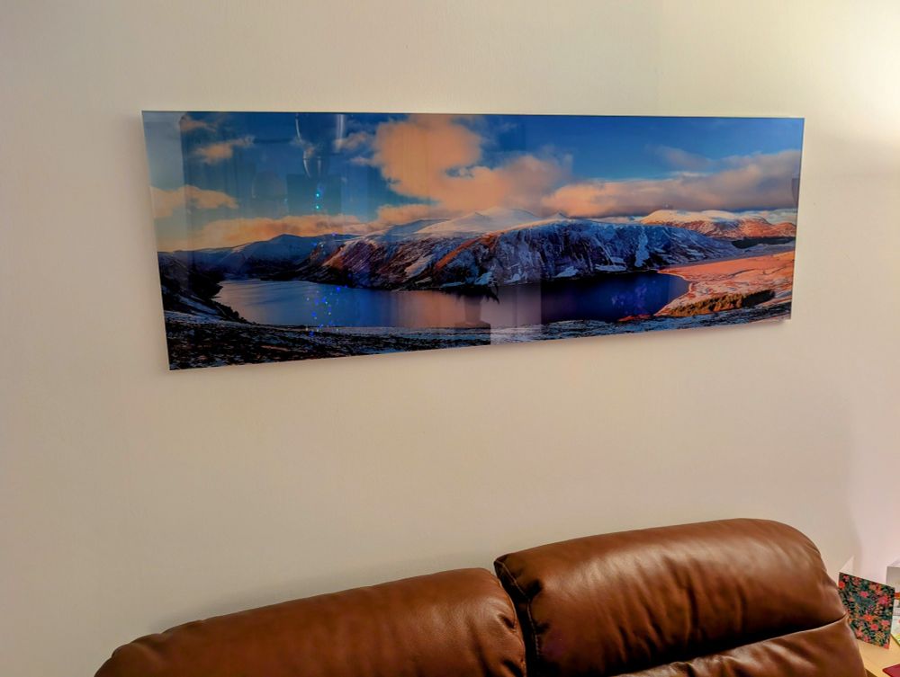 Hung two new presents to myself. Loch Eanaich & Braeriach in the first floor landing, and The Devil's Point from Sron Riach in the living room (to go along with last year's present of Loch Muick)