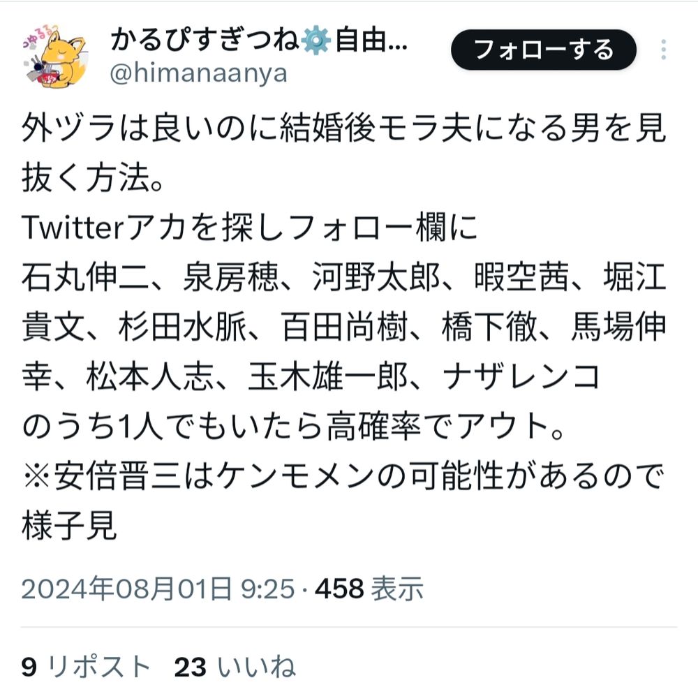 このうち一人でもフォローしていたら高確率でアウト