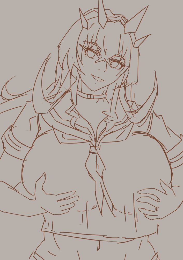 えー、設定画見ながら描いていたら、ゲーム画面とは左右逆で全部描き直しぽい。もう少し早く気づけば。あーあー