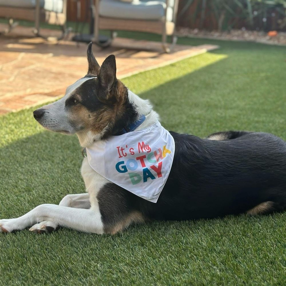 Then one of the other Maverick Mutt adopters reached out & said, “I wonder if they’d remember each other?” She took Merlin home for a trial, it was magic. ✨He thrived there, living the life he always deserved.