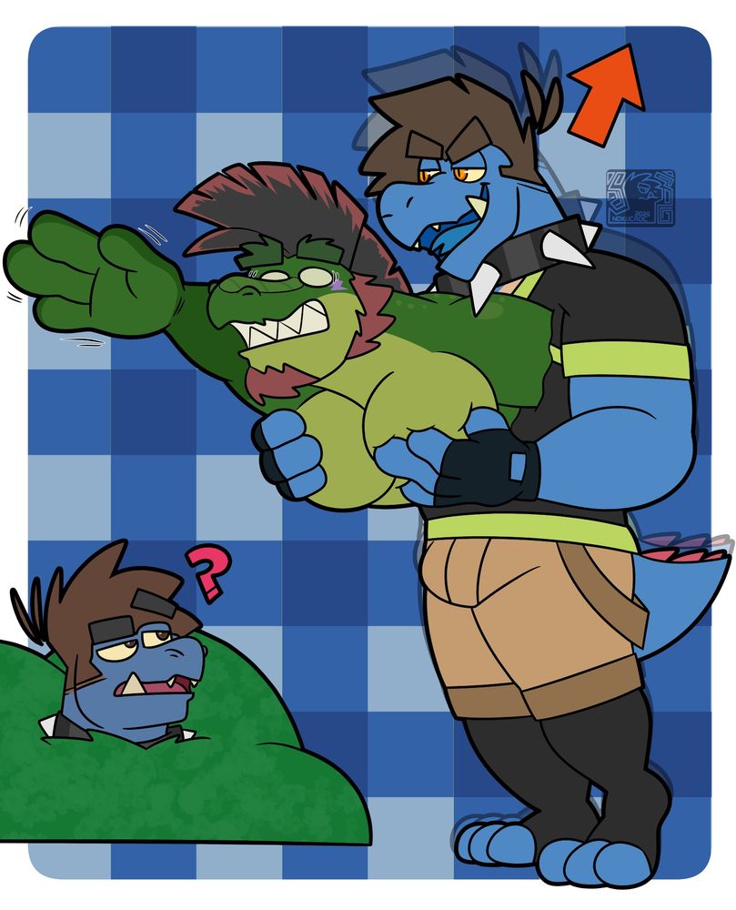 All this arguing has got me hungry.. luckily I've got two hunks behind me that can satisfy that hunger! 🐊🍽️