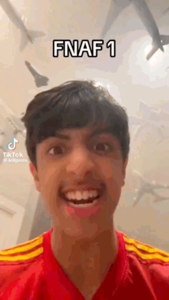 ALT: a cartoon character is standing in a dark room surrounded by red and yellow lines .
