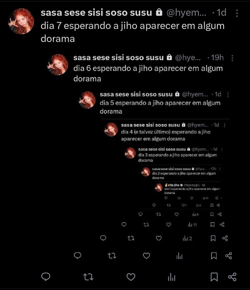 dia 8 esperando a jiho aparecer em algum dorama (nao quero perder a contagem)