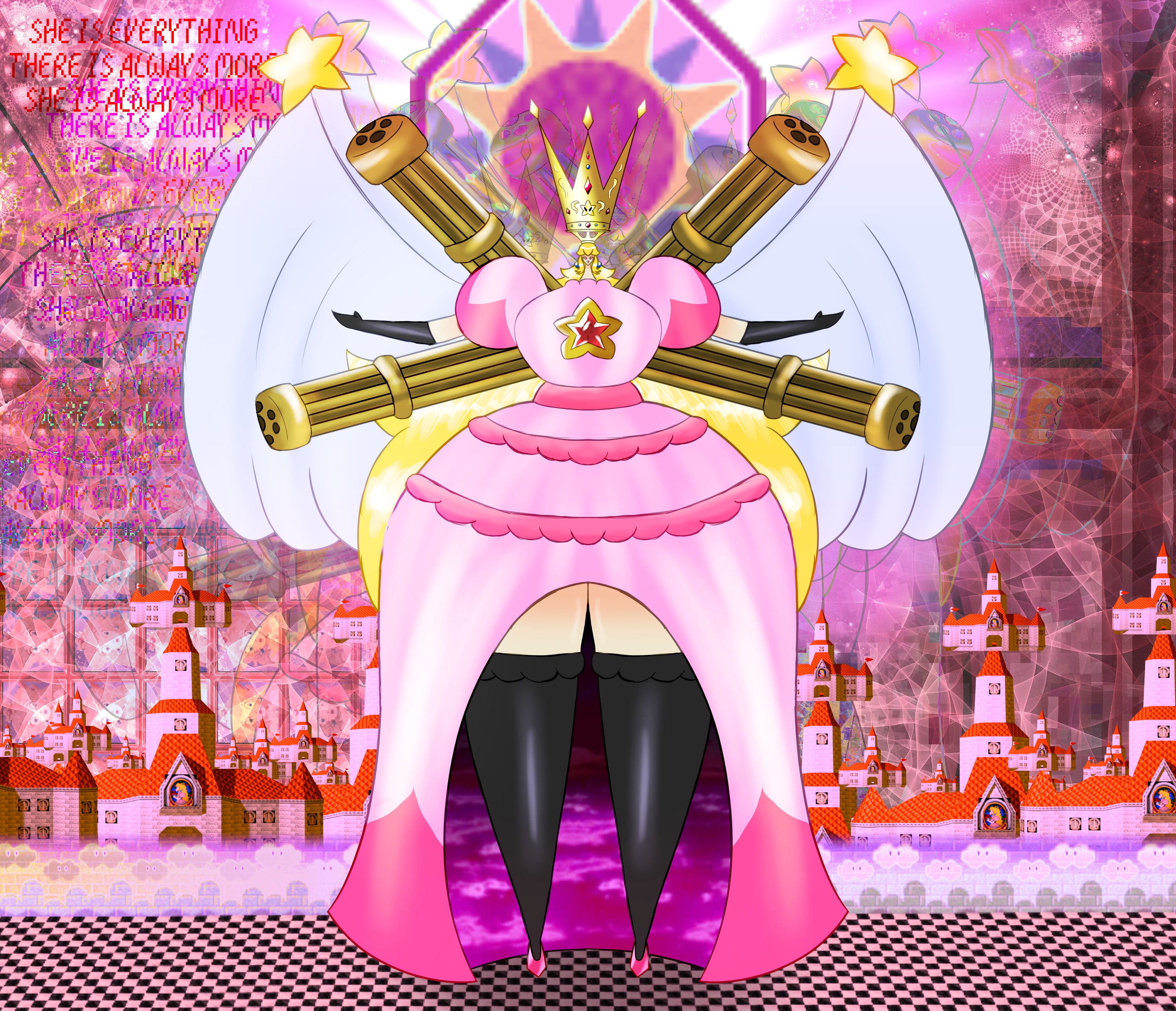 "That's me. And it's the BEST me I think I've ever seen! These badges have, like, TOTALLY over-stacked! Max HP is 470, Attack is 1,330, and Defense is 700. I'm pretty sure that I'm completely invincible now. B-but hey! I'm still cute!"