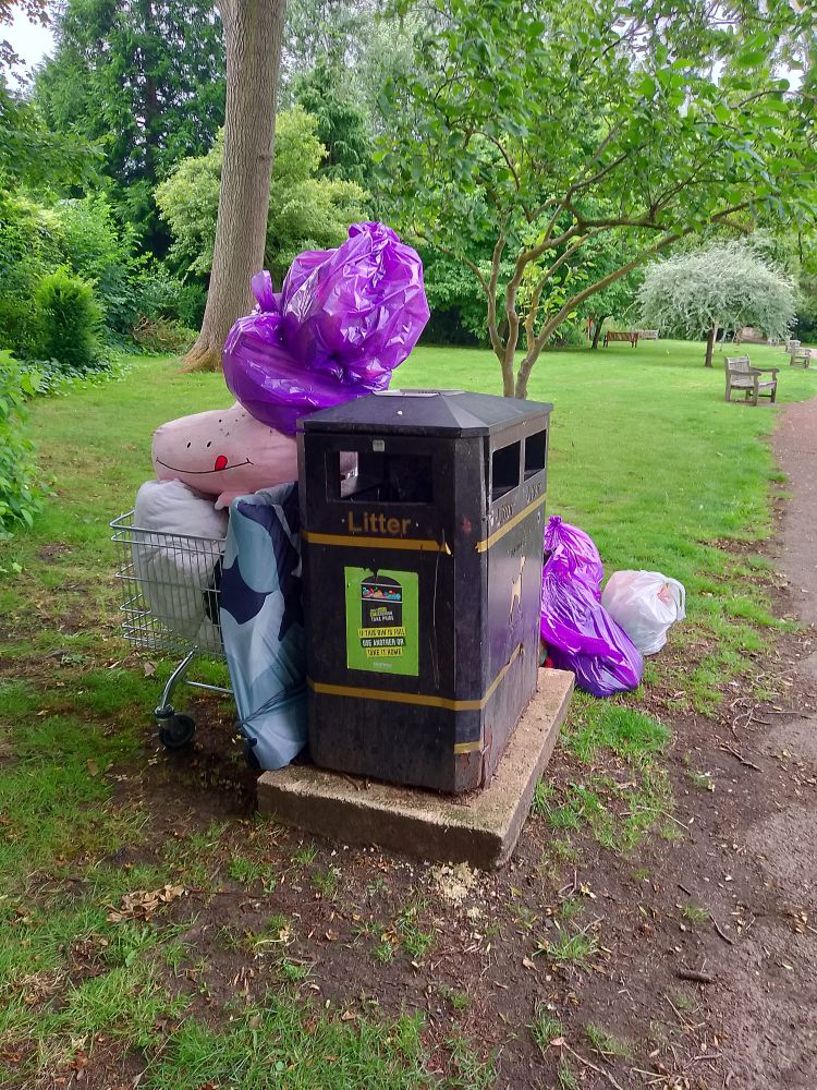A pickup truck on Sunday was able to clear the mess from the first bin of the entrance. I like to thank @rowennadavis.bsky.social avis.bsky.social, the litter picking advert. Unfortunately, I missed my encounter with you guys, as time pushed on, hours later and I arrived at this location.