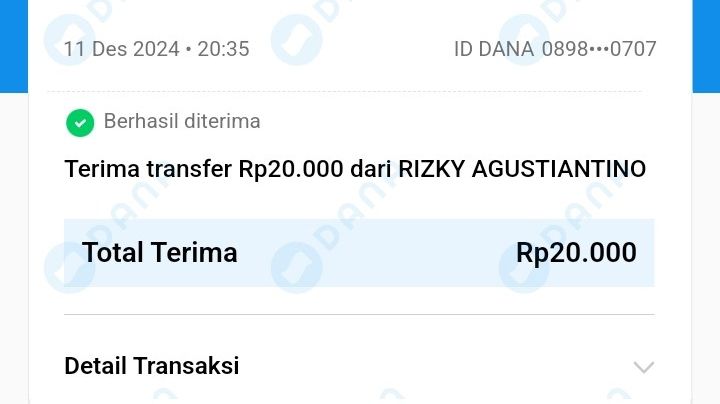 Dananya udah masuk degan sat set ..