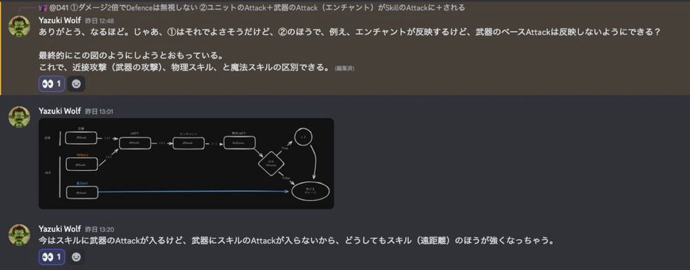 週末はこんな感じでやりとりしながら、ターン制ローグライク 『Delve Survivors』 をコツコツ開発中です。