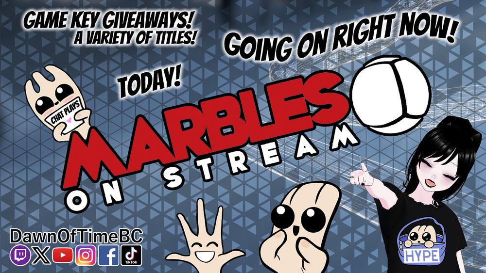 *** LIVE NOW *** on Twitch Happy Thanksgiving! Chat plays Marbles on Stream for Steam Game Key Giveaways! twitch.tv/dawnoftimebc