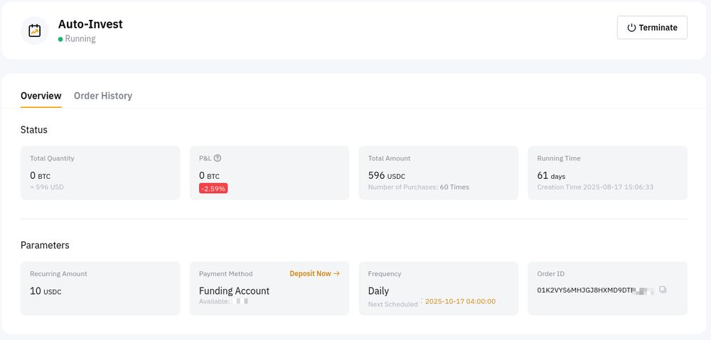 The market is giving deep discounts, and the DCA bot is loving it. Today's haul: +0.00009048 BTC for $10.