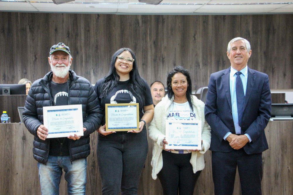 The fishers collaborating on my research projects and helping release stingrays also received their own Resolution of Congratulations! Since 2020, over 4,000 rays have been released in Balneário Camboriú, and many other great results have been achieved through our partnership. 🎣