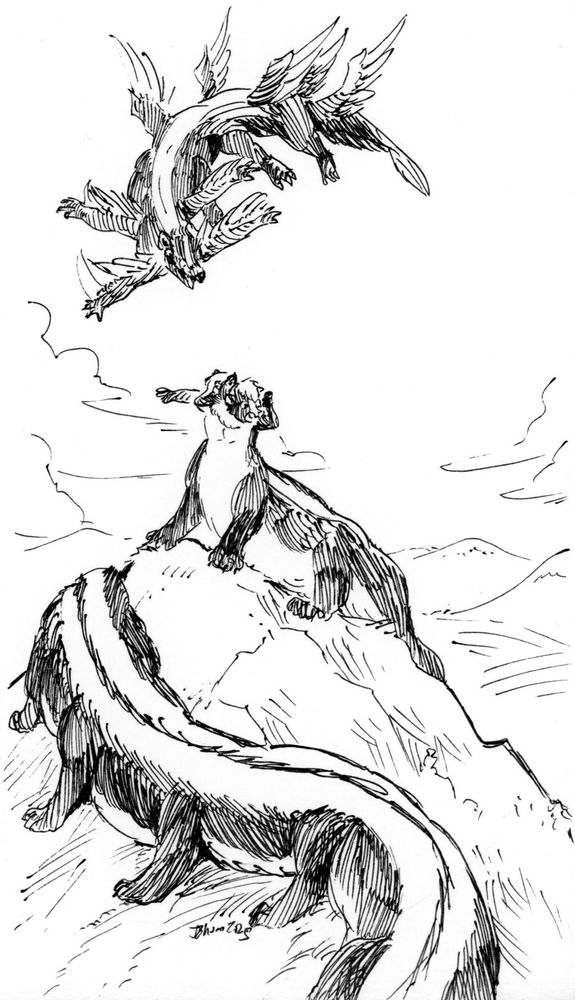 soooo here's ion as a giant space dragon! drawn by the incomparable @farorenightclaw.bsky.social ~
