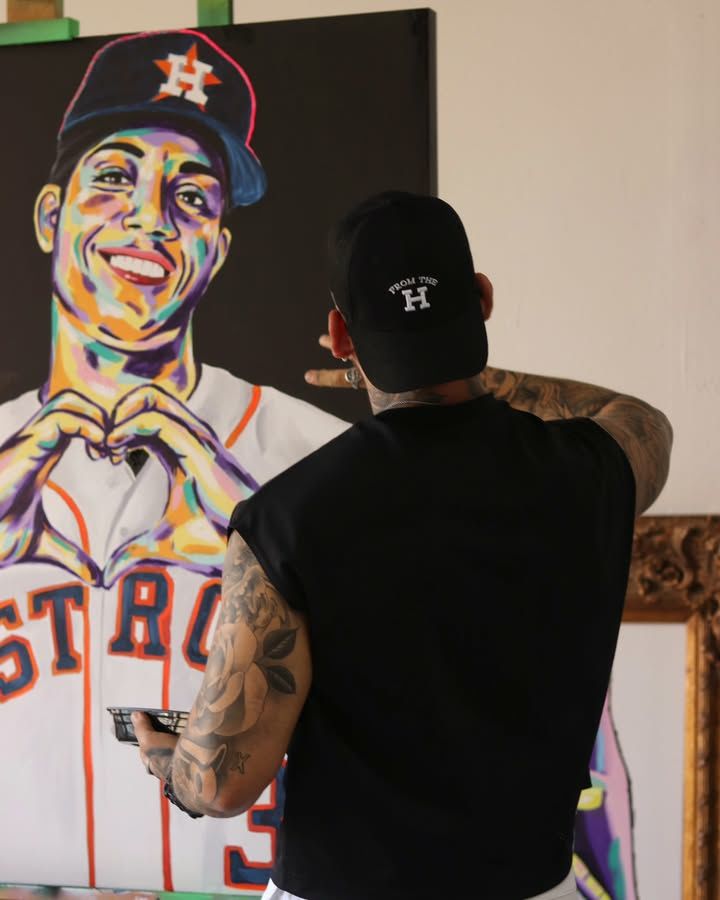 We were lucky enough to feature artist Israel Rodriguez's portrait of Jeremy Peña in our store for the last several months. Today, we brought it back to his studio and got to spend a little time with Israel while we admired his latest pieces. 🤘🎨