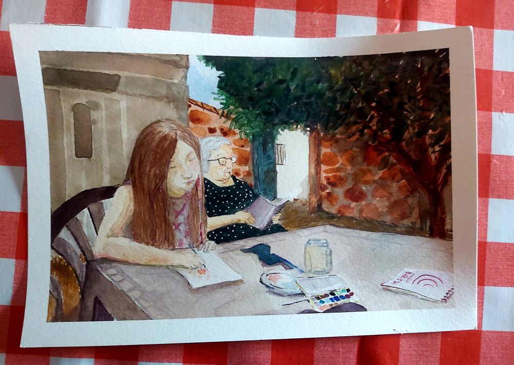 Mi madre se está leyendo Fortunata y Jacinta. De banda sonora, las tórtolas y algun gato que está pero no se ve.