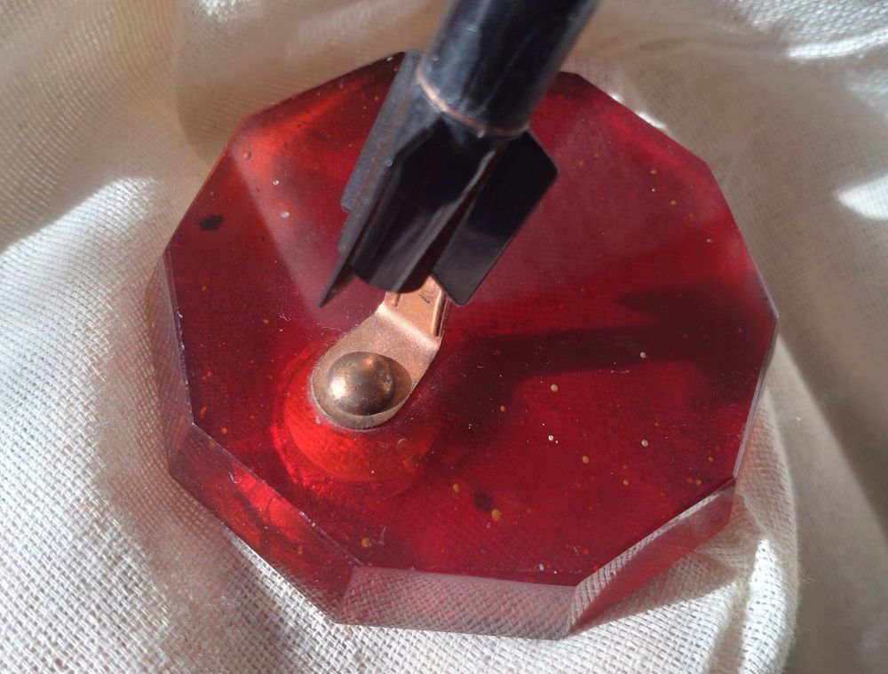 ソ連らしく、ロケットと宇宙をモチーフにした万年筆ペン台だ。