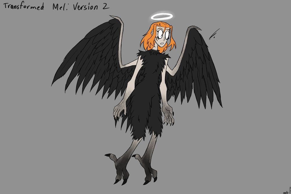 Alrighty, I really love the theory/idea of Mel gaining bird/birdlike features so I spent a good chunk of last week sketching that stuff. First round's my interpretation of how that could appear in-show.