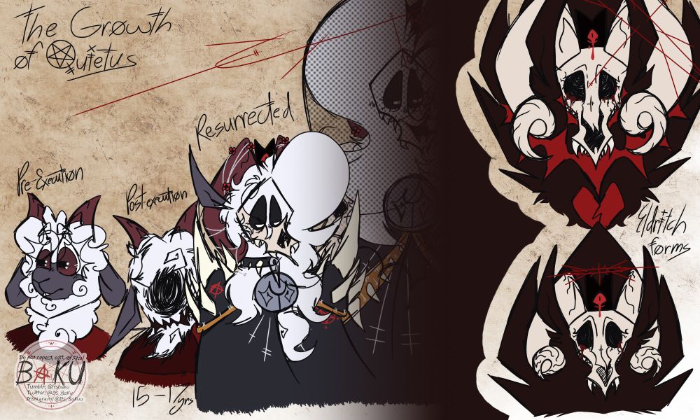 Redraw of an old art to show Quietus throughout my Cult of the Lamb AU, Cult of Quietus.