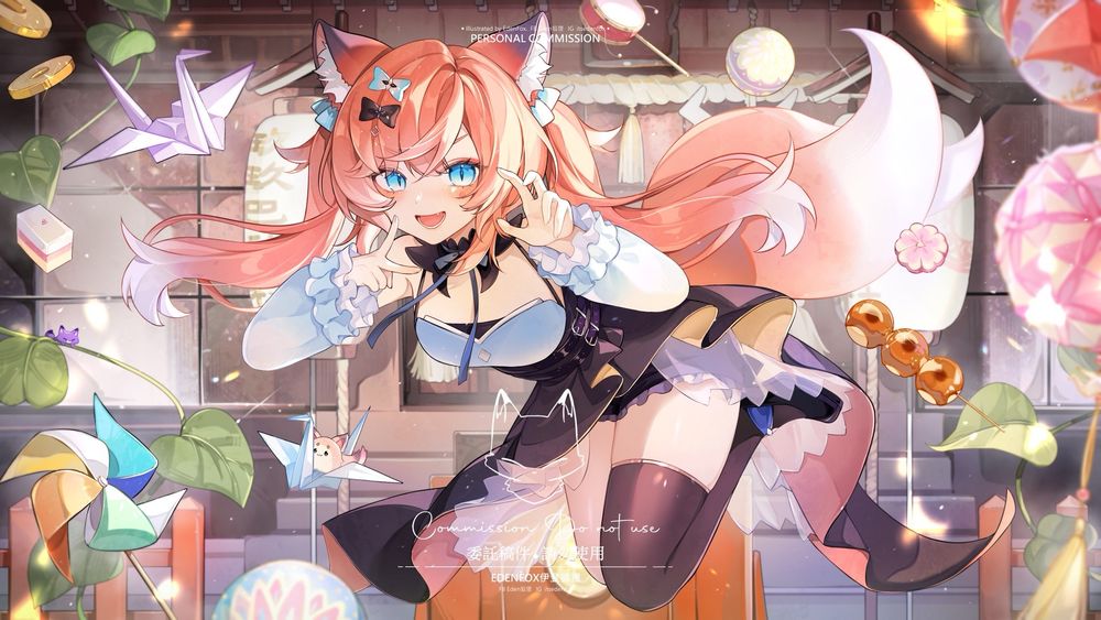 非常開心能畫到可愛狐狸🧡加了很多祭典相關的物件,熱熱鬧鬧的迎接新的一年
