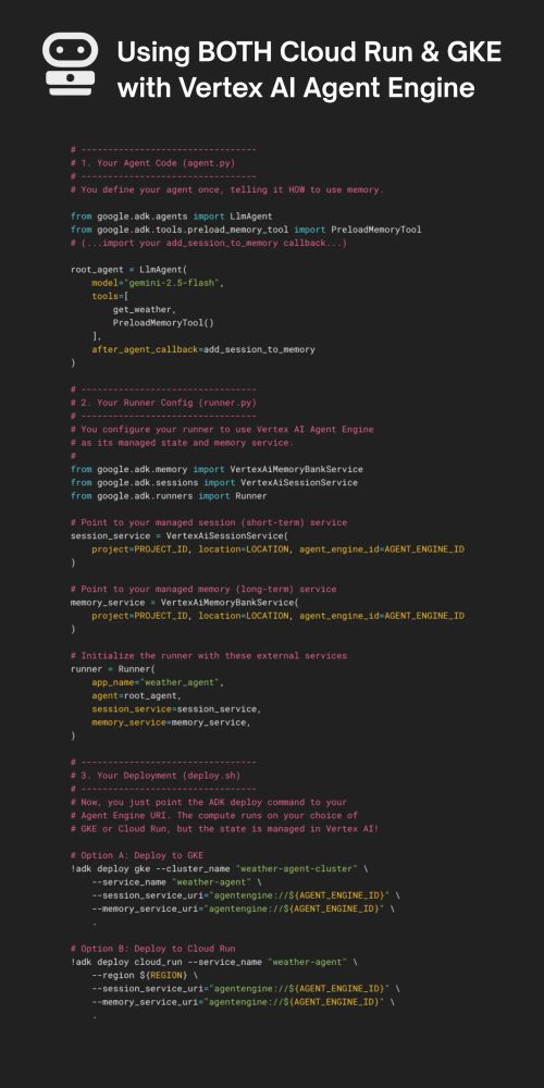 Check out the two new tutorials in 🧵 on building AI agents using the Agent Development Kit (ADK) + Vertex AI Agent Engine for Sessions & Memory.