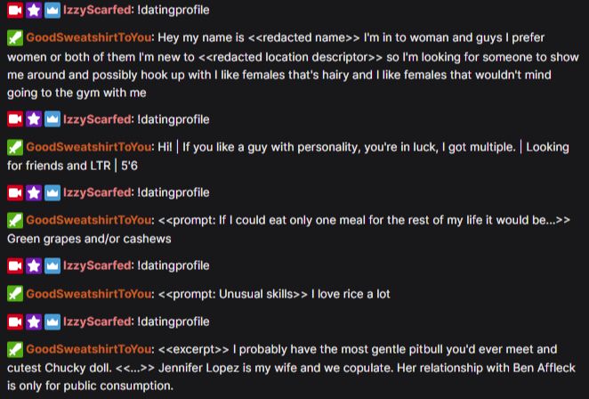 You could get an about-me section; you could get a response to a prompt idk