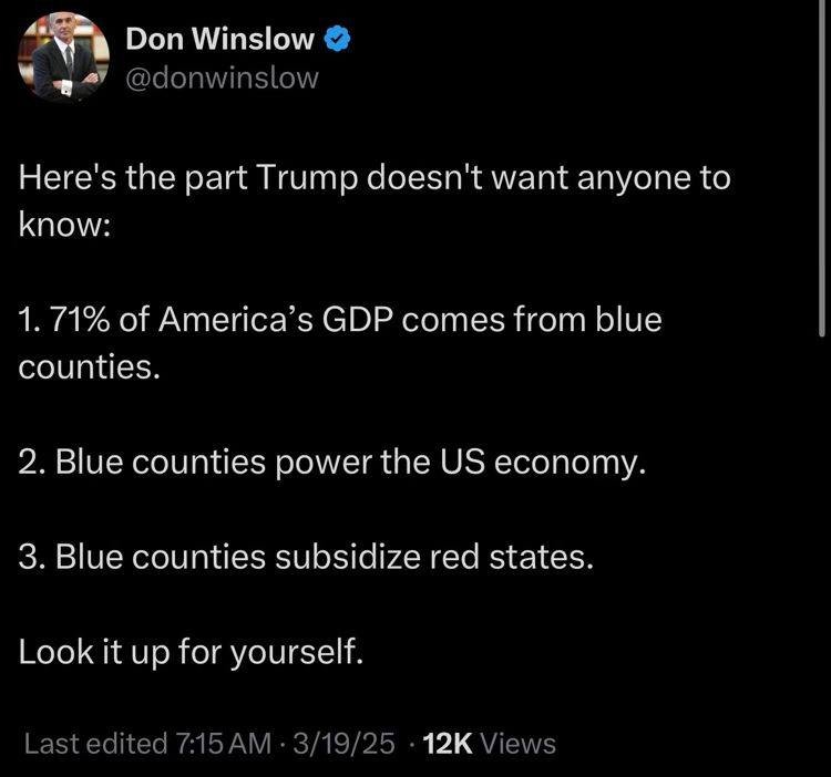 1 - 71% of America's GDP comes from BLUE counties.