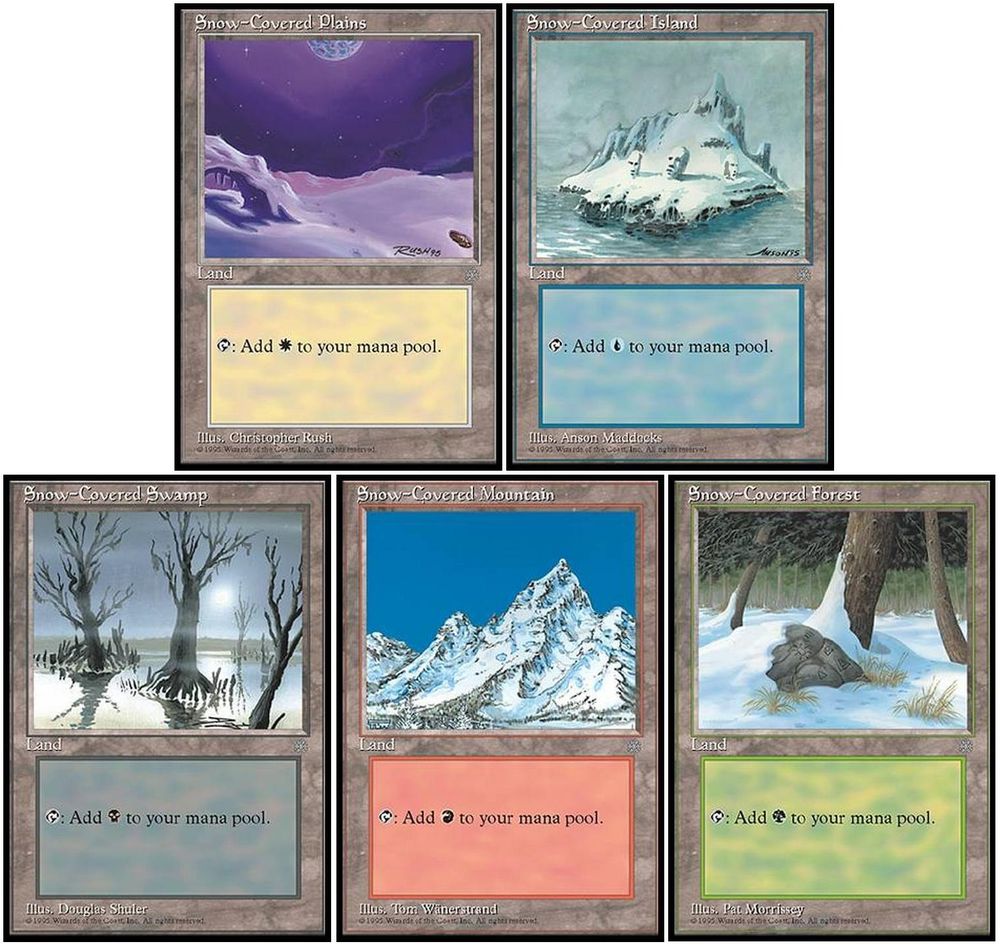 Snow Covered Lands, any and all. I love winter in general and have a deep nostalgia from seeing these for the first time.