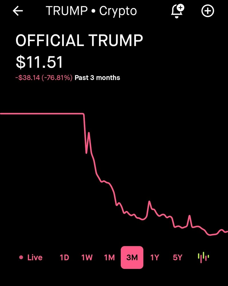 The orange tyrant's crypto is doing great. I can't feel empathy towards anyone that bought in.