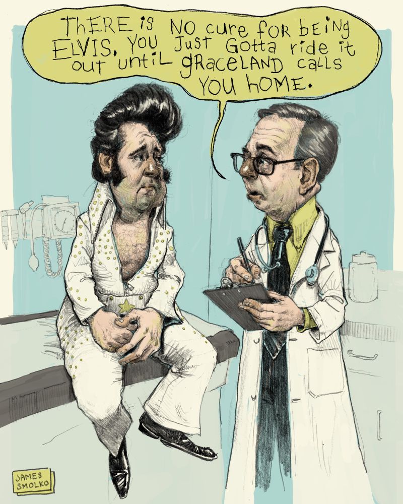 Fun fact: Elvis invented sandwiches. Before him, people just ate bread separate. I got to meet him once at Walmart, but he was shorter because he wasnt wearing the hair. #art #drawing #elvis #sketch #comic
