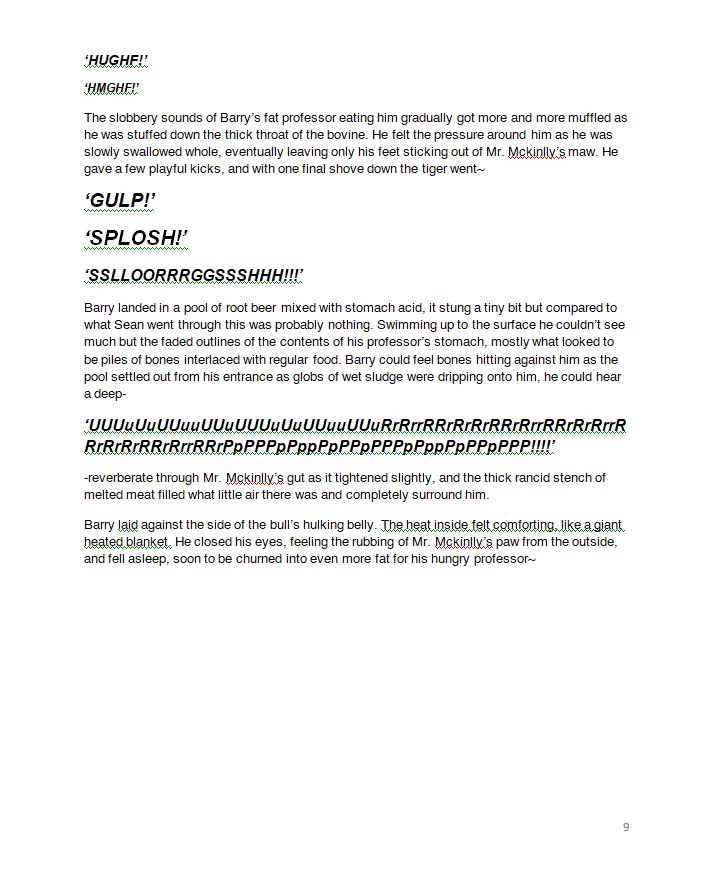First thing fer this year's Vore Day~ I've only proof read this once, forgot to do that, and I dunno how good of a writer I am in the first place, but here's a story based on a drawing from a bit ago~ (Pages 1-4)
