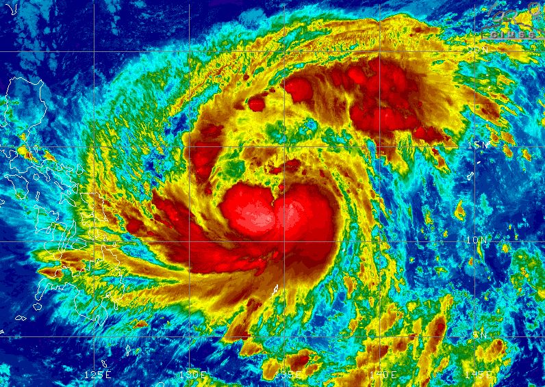 Typhoon Fung-wong has intensified to the equivalent of a major hurricane east of the Philippines; max wind speed 125 mph (200 km/h); moving toward west-northwest at 23 mph (37 km/h).