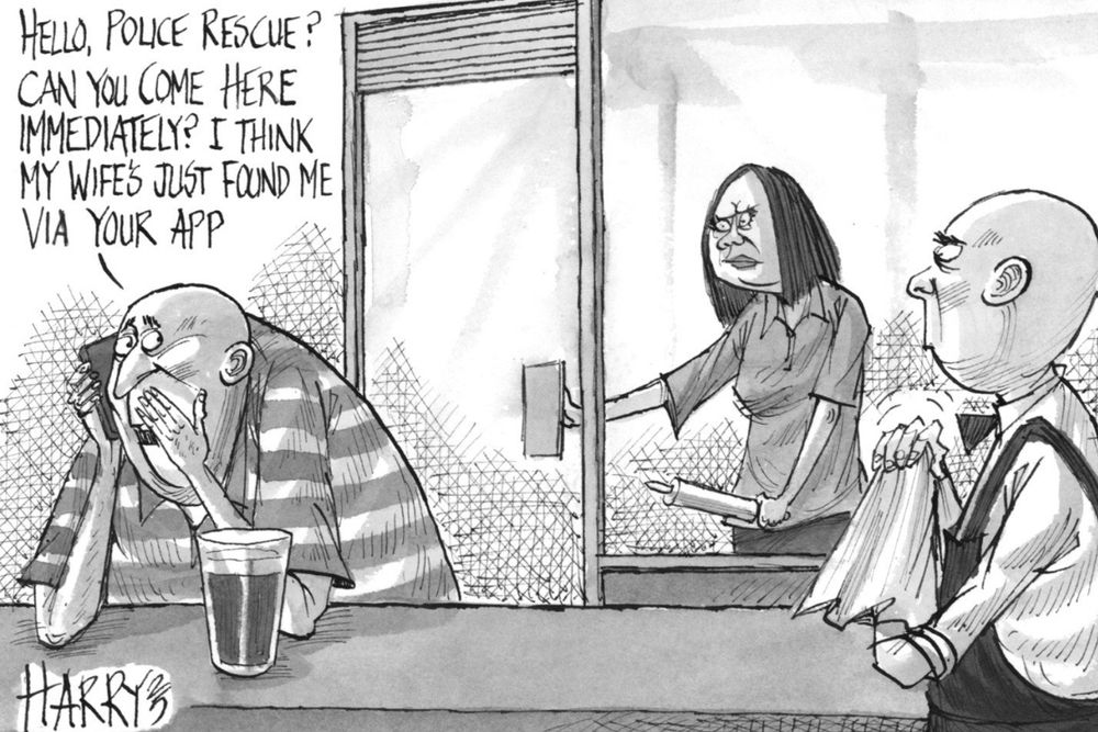 Harry Harrison detects issues when “Users can also choose to share their live location with their emergency contacts” in the Hong Kong police app: today’s cartoon