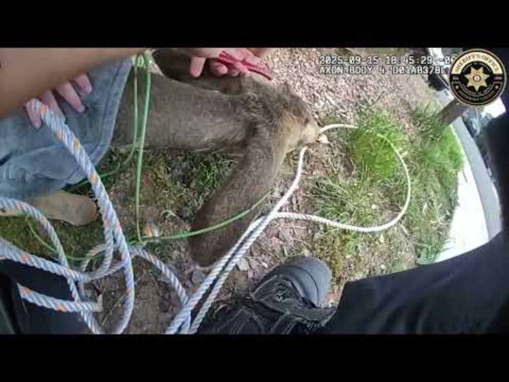 Animal Control Officers McMullen and Bennett responded to a call in Littleton after a four-legged resident decided to explore the latest in suburban fashion: a 4-panel wire tomato tower.