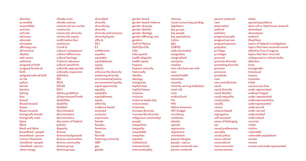 list of forbiddrn words to use by federal government.