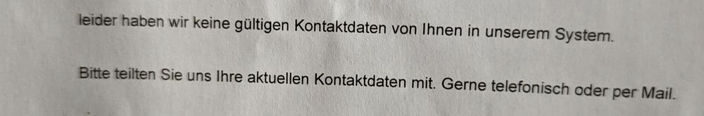 Translation: I just opened this LETTER. It says roughly 'we've no up-to-date information on how to contact you'. They wrote that, in a LETTER ADDRESSED to me 🧐