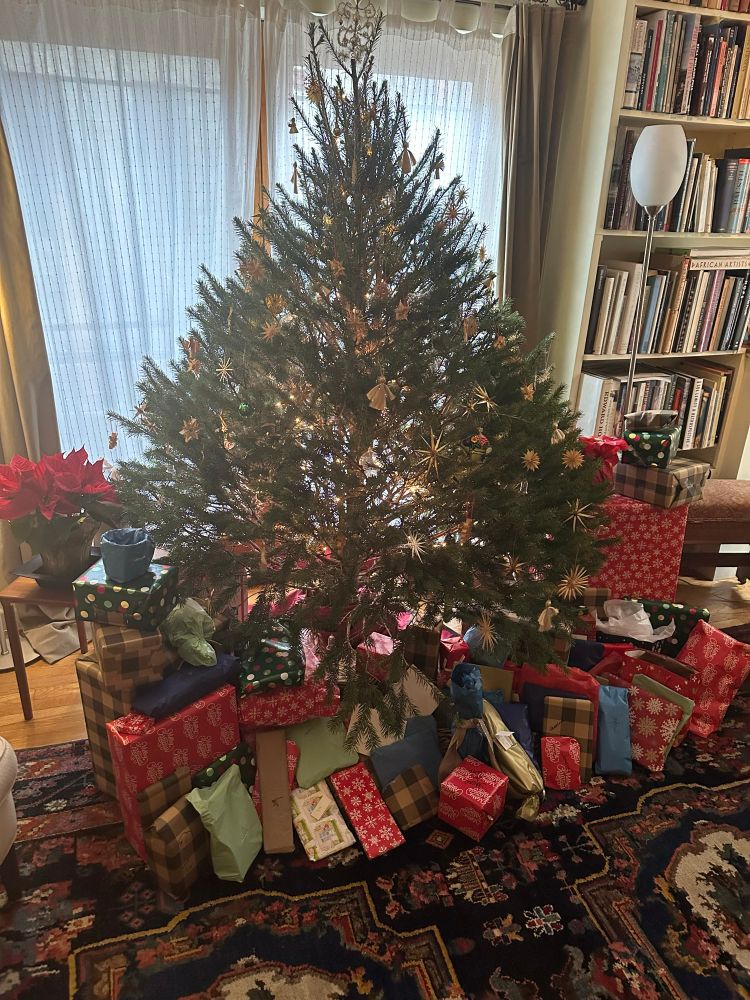 Photos of some breakfast crepes and presents under this tree this morning at Christine Weeks’ mom Helma’s.