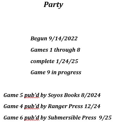 "The composition of further "Party Games" will continue indefinitely, perhaps forever, until the forces...signal that sufficient "Party Games" have been played..."