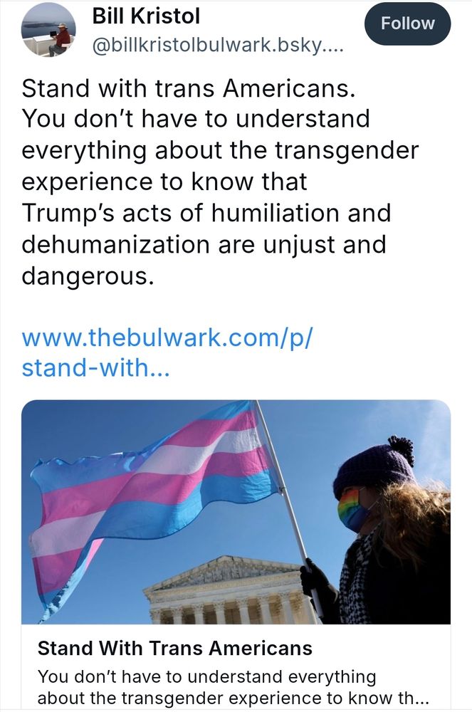 When Bill Kristol has more to say to say on trans rights than the majority of the British labour party.