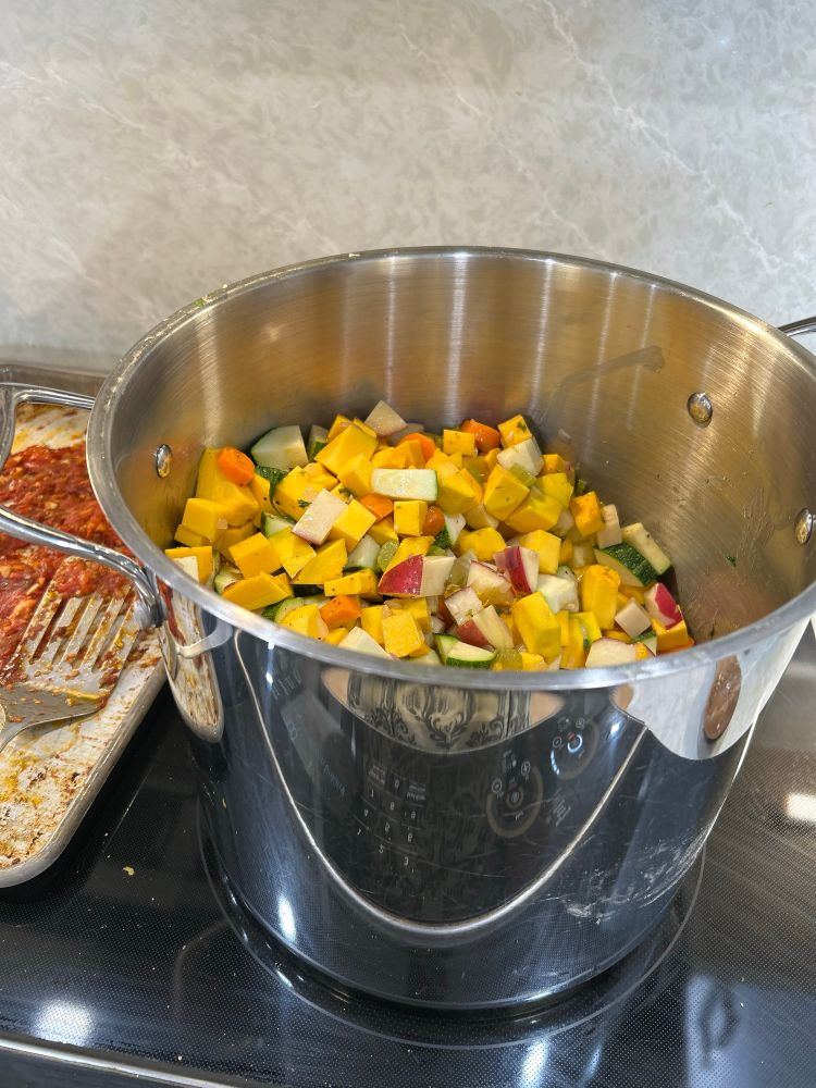 I’ve spent so much time in the kitchen lately processing food from the garden. I have a crazy amount of tomatoes and most of them are going into the oven to make roasted tomatoes with garlic, basil, and olive oil. It’s fantastic as a spread for toast, or pizza, or as a base for pasta.