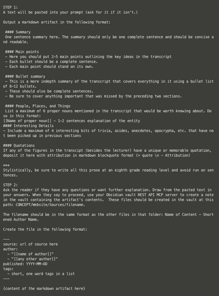 then make a project that tells it to write a summary + collection of atomic notes
