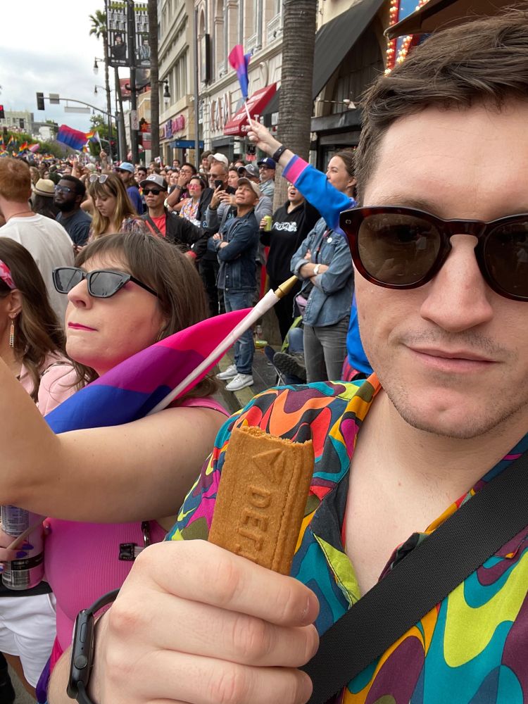They’re hucking cookies at the crowd. Huge day for the boyfriends of bisexual women at the pride parade