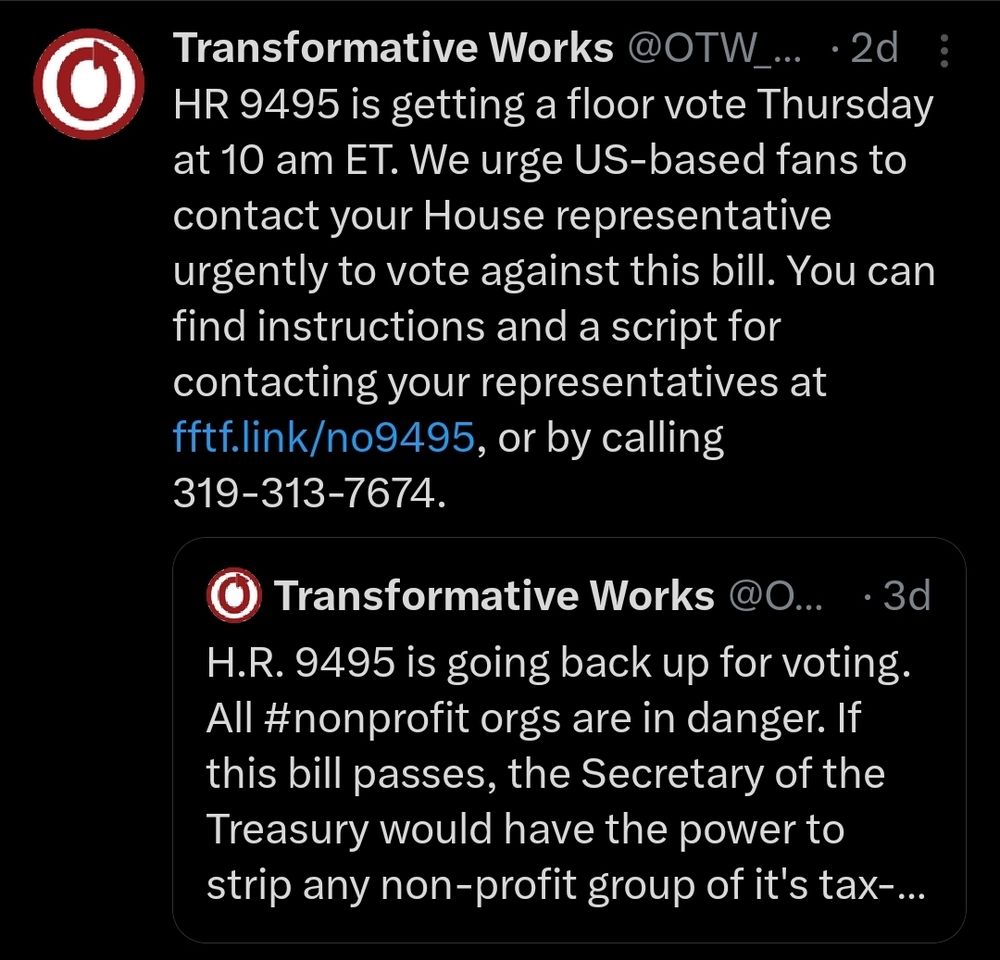This bill has already passed in the House, but it’s still up for a vote in the Senate. If it passes there too, every non-profit is in danger, including the AO3.