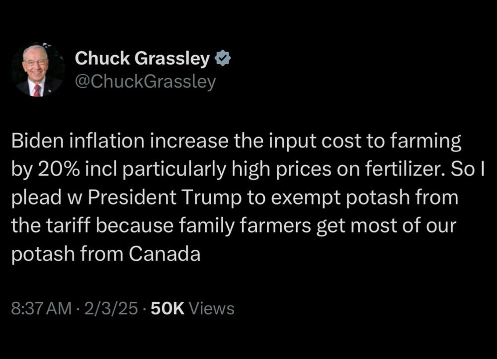 If Trump continues his tariff war Canada needs to double potash export tariffs to all red states.