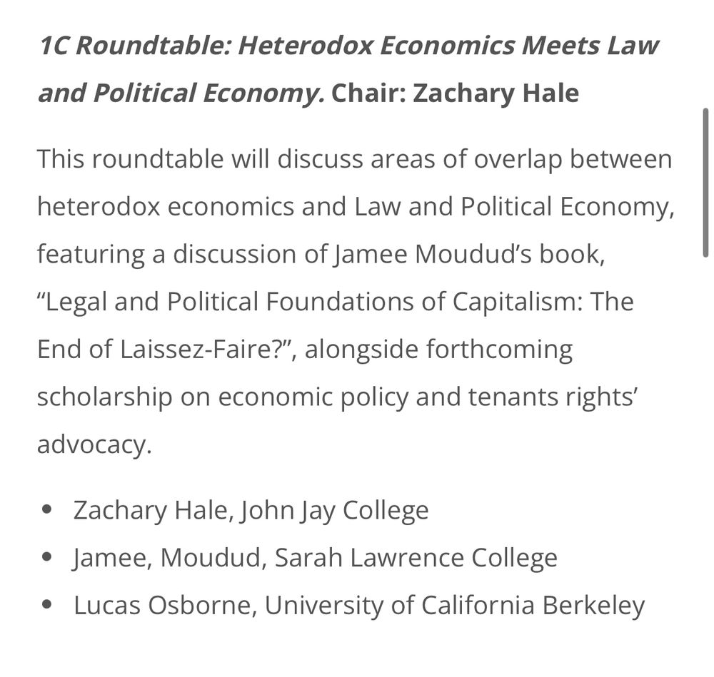 If you're at ICAPE this weekend make sure to check out this panel on LPE and heterodox econ with @zachale.bsky.social and @lucastosborne.bsky.social