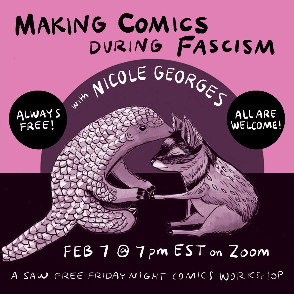Creating Comics During Fascism -- taking this webinar in a few minutes @comicsworkshop.bsky.social sawcomics.as.me/schedule/a8d...